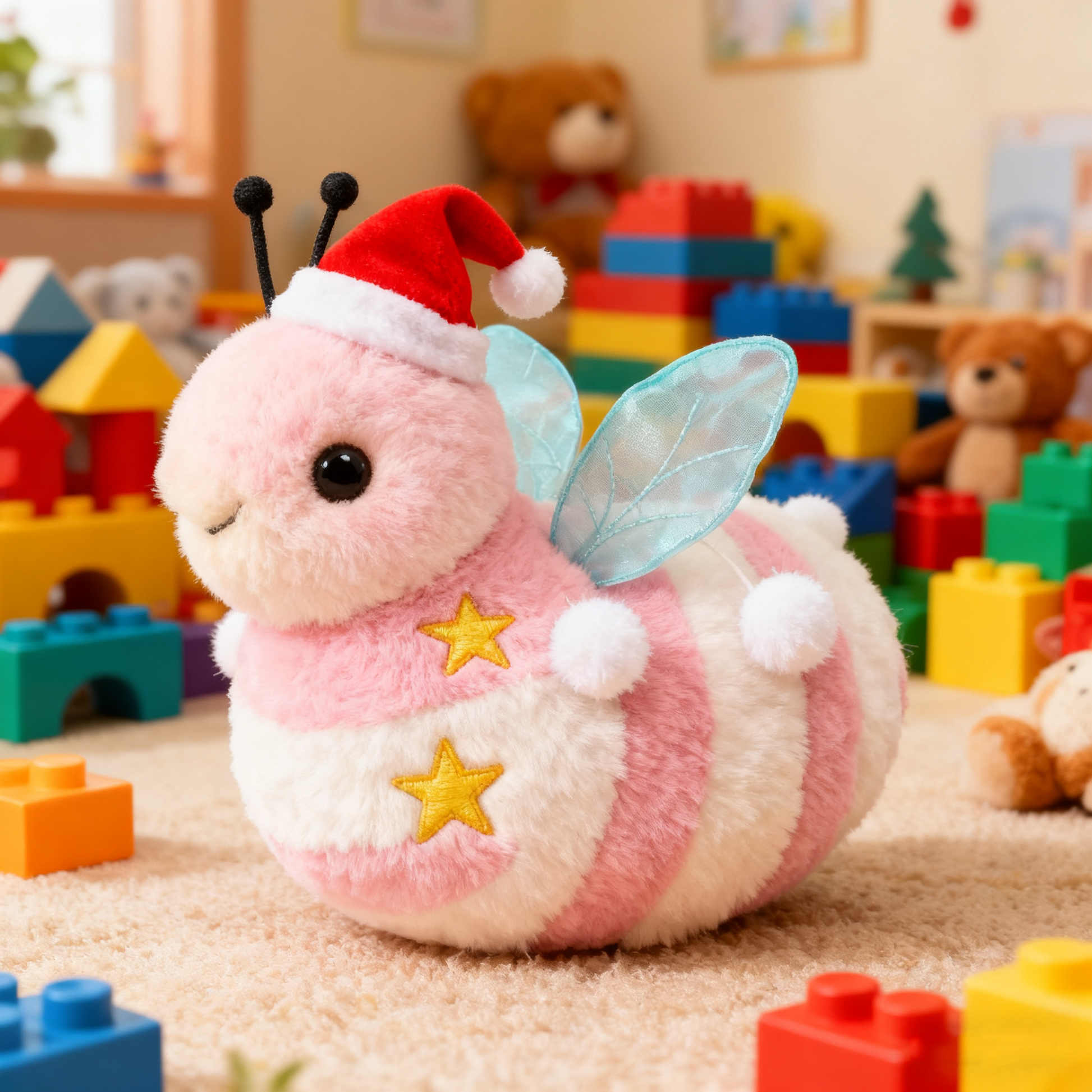 Everyone sings praises to parsley, sage, rosemary, and thyme, but our lively and adorable fluffy little bee wonders why no one sings her praises! Chive is a friendly little bee made of red and white fluffy fabric. She has a warm smile like the spring sunshine, a round and soft body, and is an irresistible playmate for little nature lovers. We've also carefully designed a pair of sheer blue-green wings and two antennae with knotted ends for Chive. Bring this charming fluffy little bug home; Chive will guide you to explore all the most beautiful gardens!