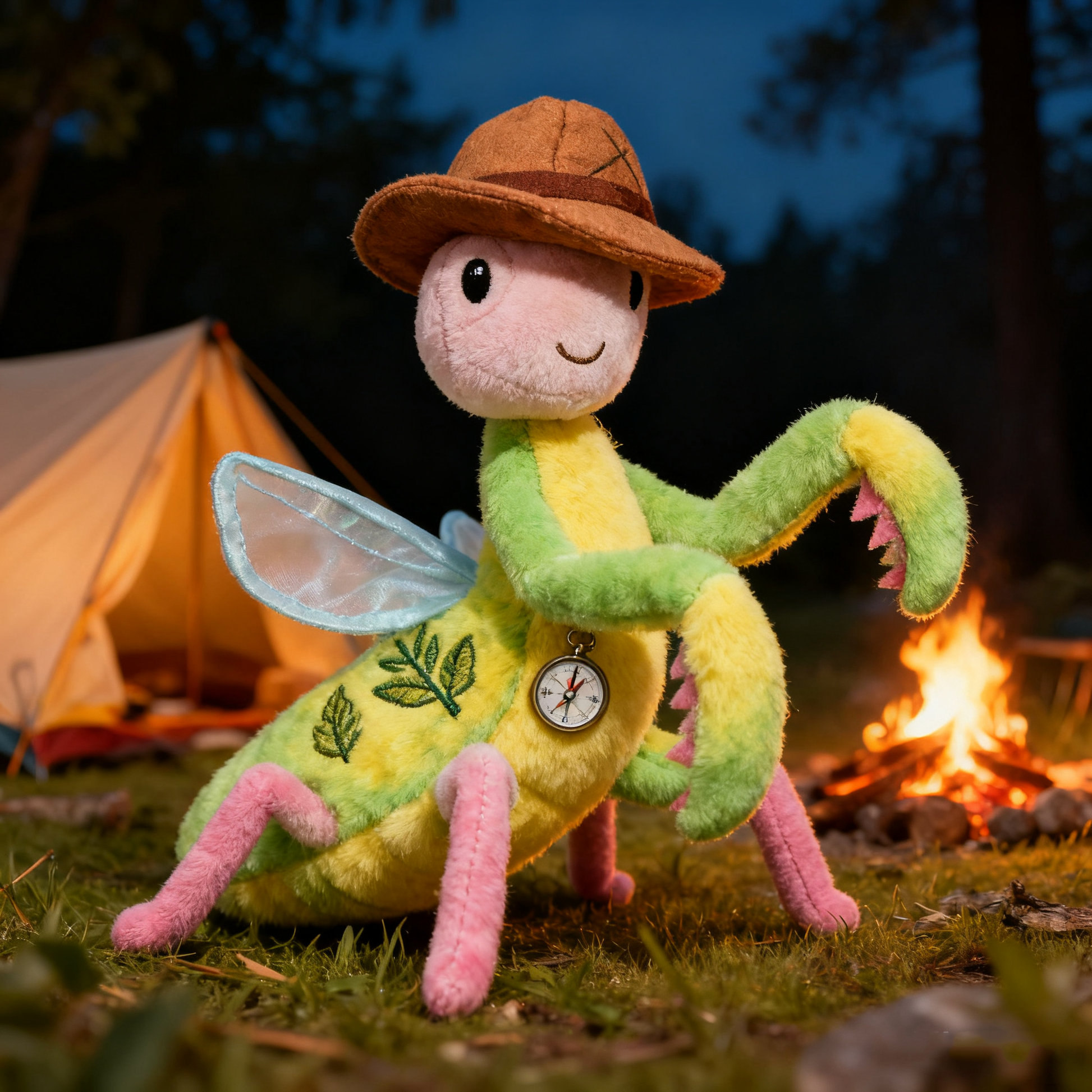 At first glance, you'll grasp the captivating yet quirky personality of the plush praying mantis, Ophelia! This adorable creature, with her forest-green hues, blends perfectly into any flowerbed. Her playful eyelashes and slightly mocking smile further enhance this exotic mantis's charm. A pair of shimmering, transparent wings cover Ophelia's pale green body. Agile and extraordinary, this unique plush toy is sure to bring a smile to the face of anyone fortunate enough to meet her!