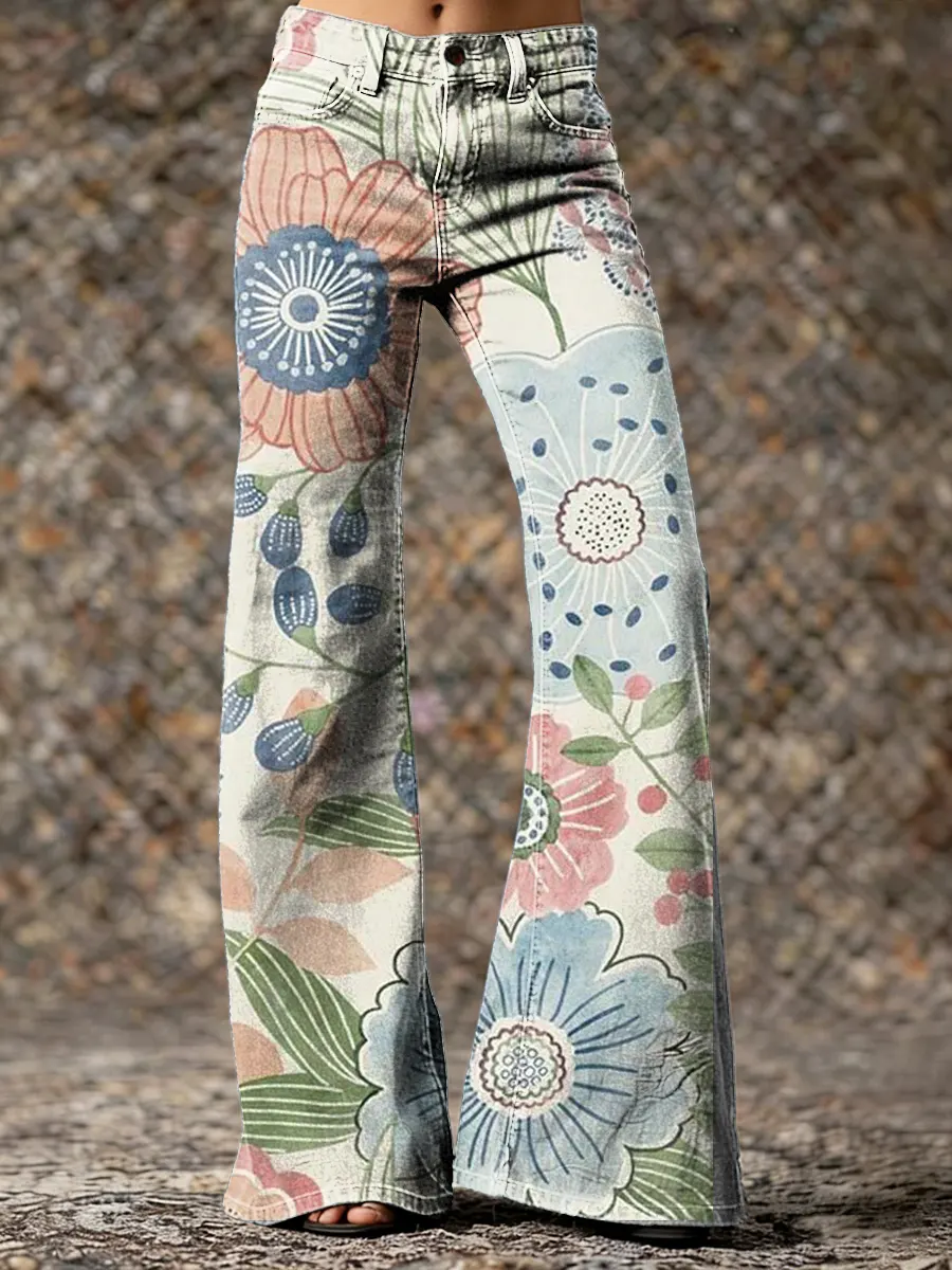 Ethnicity Flowers Leaves Geometry Women's Print Casual Wide Leg Pants