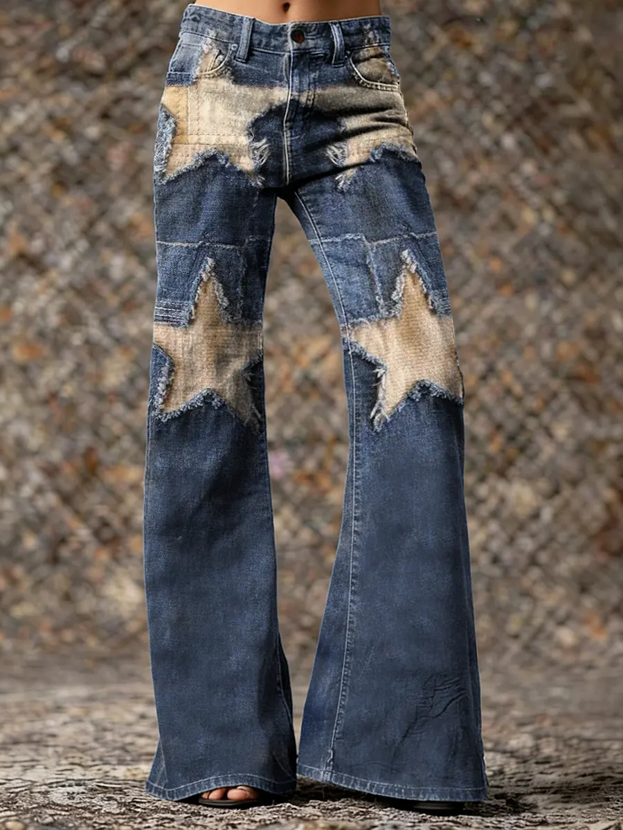 Ethnicity Stars Patchwork Women's Print Casual Wide Leg Pants