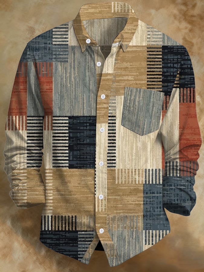 Men's Retro Abstract Art Print Comfortable Business Style Shirt