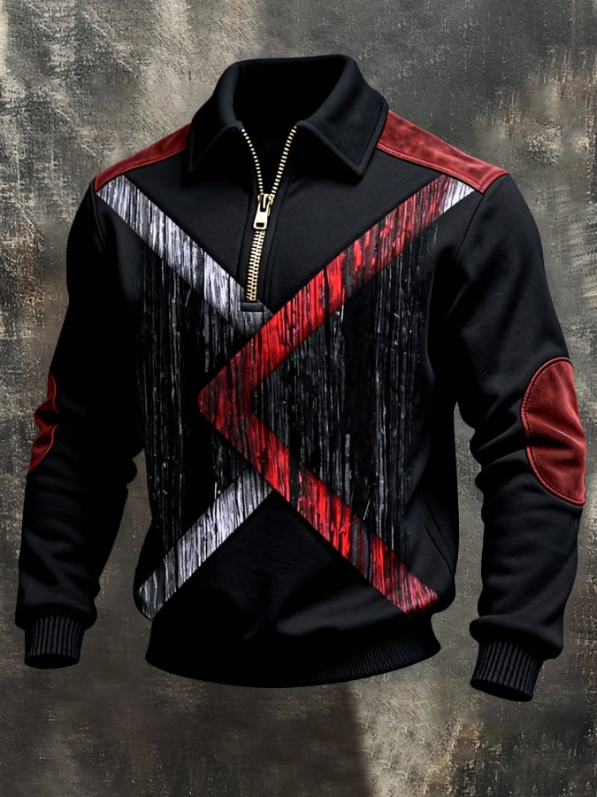 Men's Retro Color Block Print Color-Blocked Zip-Up Sweatshirt
