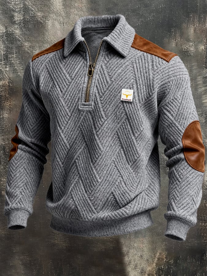 Men's Retro Jacquard Textured Patchwork Comfortable Color-Blocked Zip-Up Sweatshirt