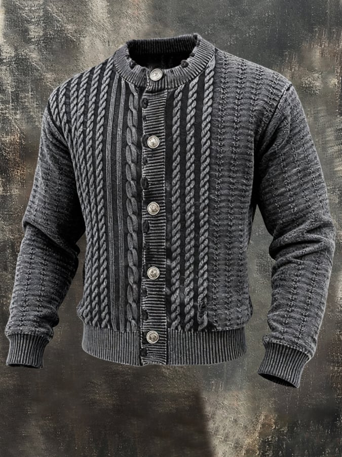 Men'S Vintage Washed And Distressed Warm Sweater Jacket