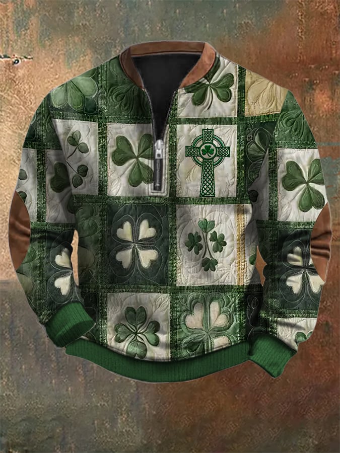 Men'S Western Distressed Hot Print 1/4 Zipper Stand Collar Long Sleeve Sweatshirt