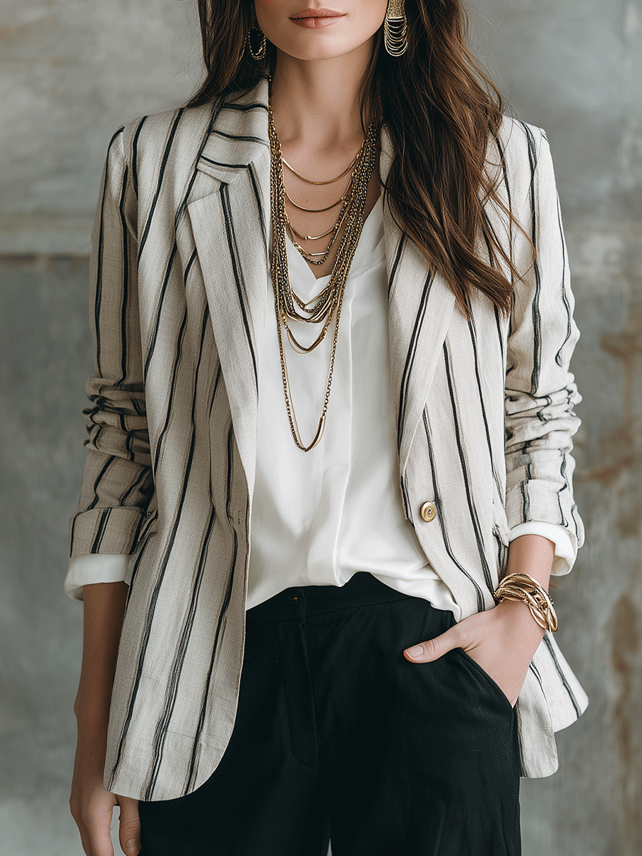 Modern Chic Pinstripe Lightweight Blazer Jacket