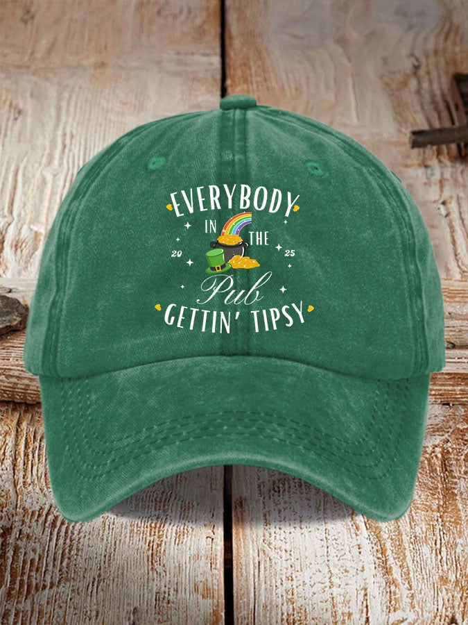 Unisex Distressed Washed Cotton Everybody In The Pub Getting Tipsy St. Patrick's Day Hat