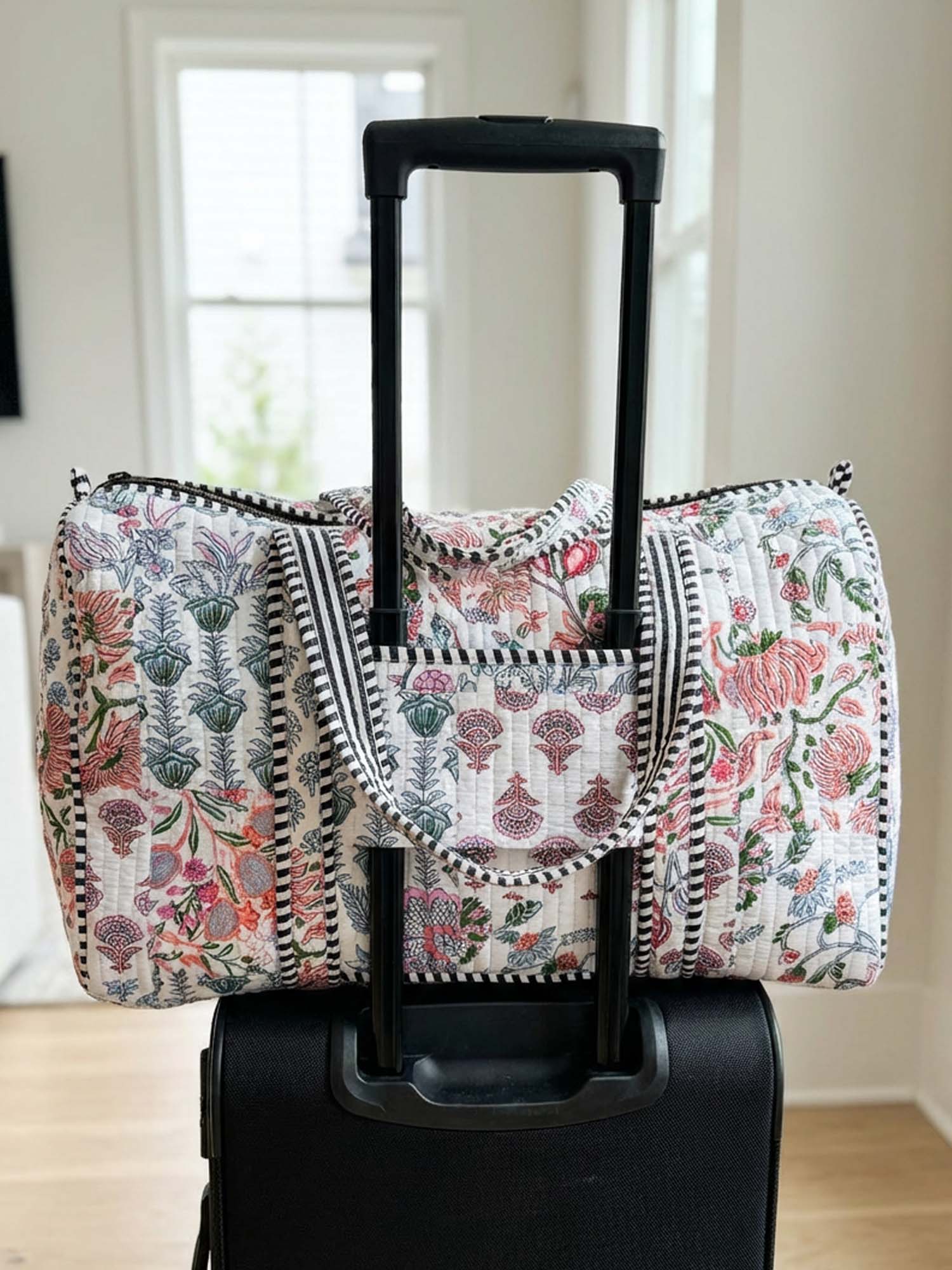 Vintage Flower Quilted Duffle Bag