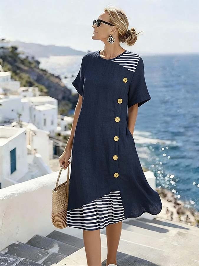 Women'S Casual Color-Block Striped Dress