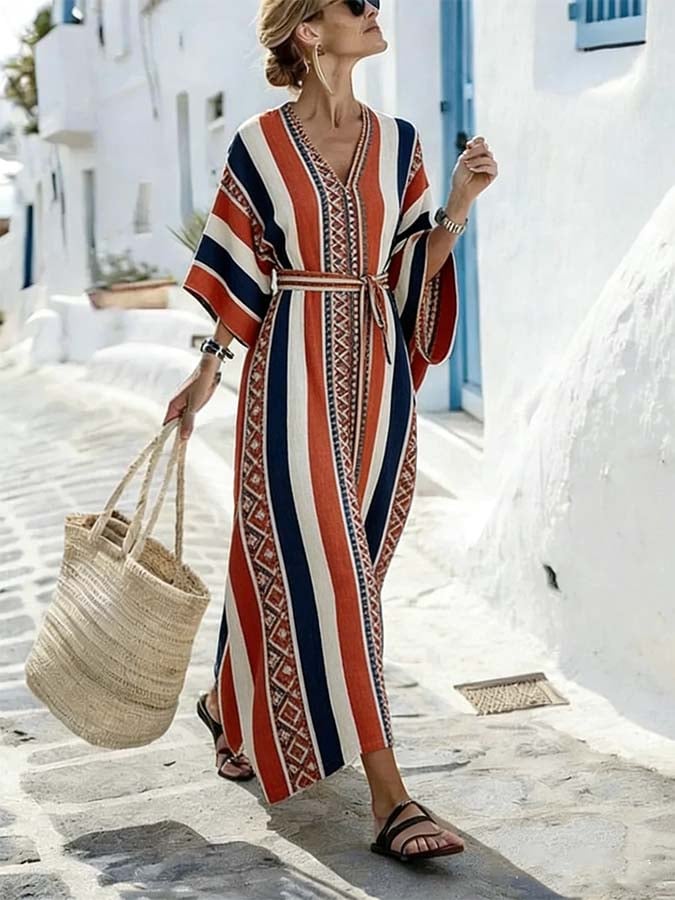 Women'S Casual Color-Block Striped Dress