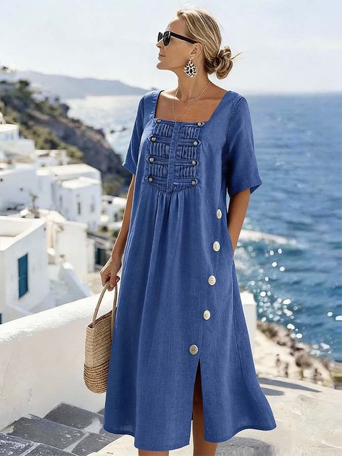Women'S Casual Solid Color Dress With A Unique Square Neckline