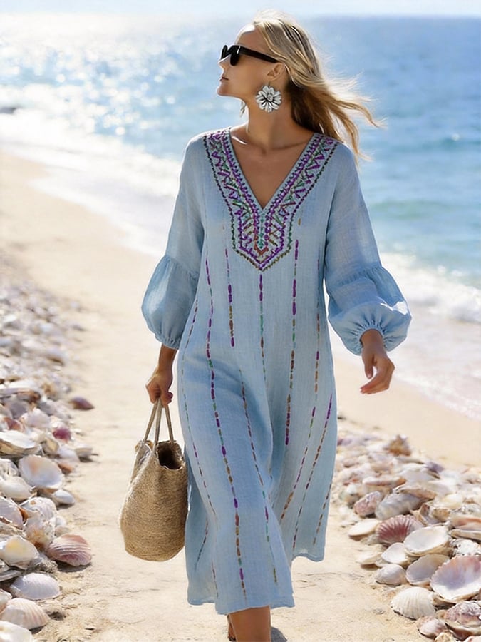 Women'S Casual V-Neck Loose-Fitting Vacation Dress