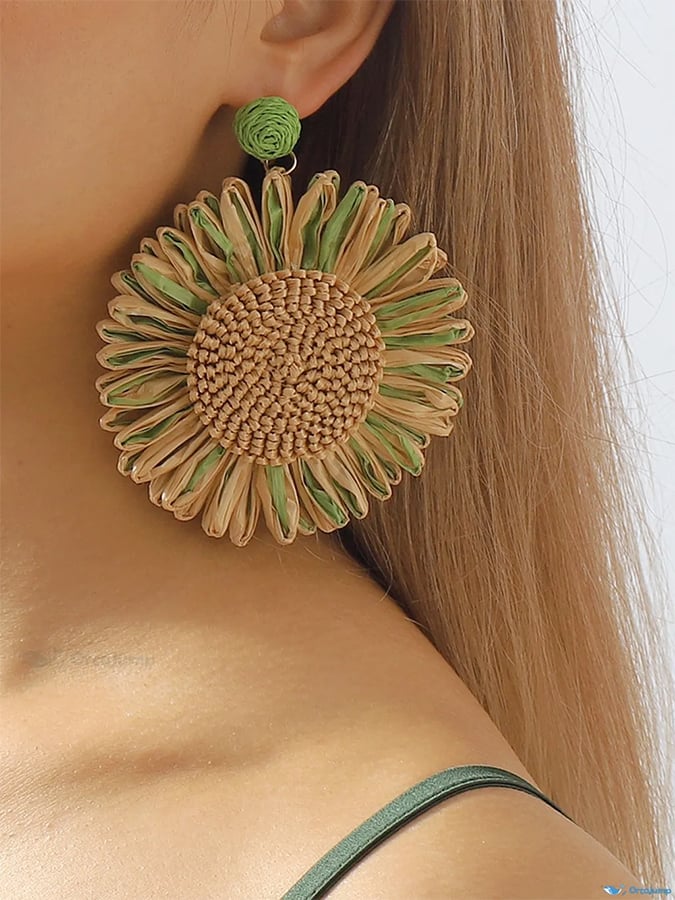 Women's Raffia Woven Sunflower Earrings