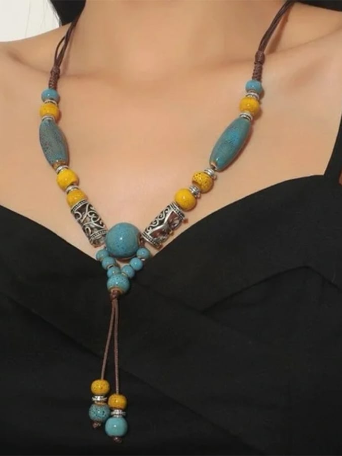 Women's Vintage Ceramic Beaded Necklace