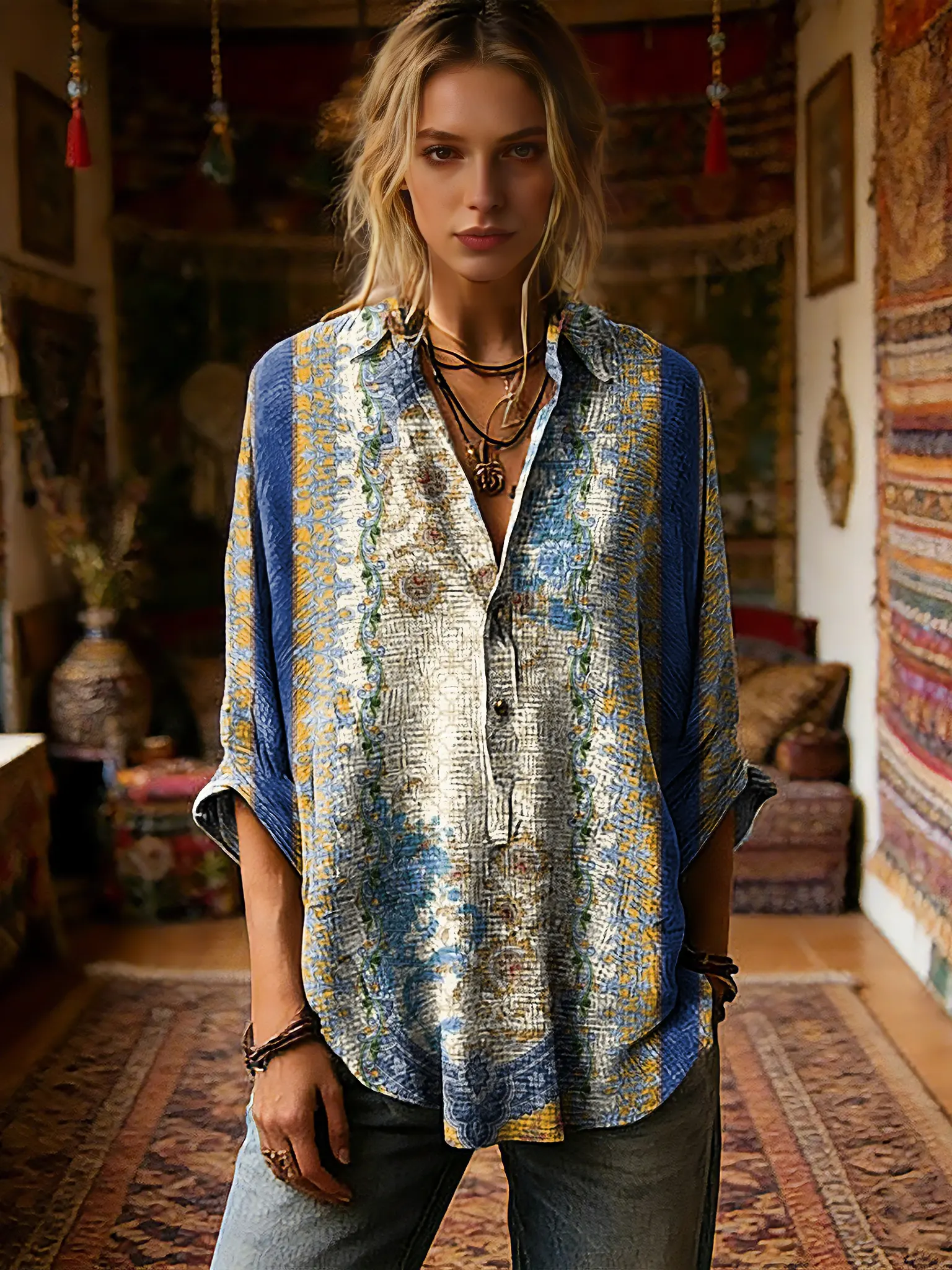Women's Vintage Floral Pattern Art Print Casual Long-sleeve Shirt